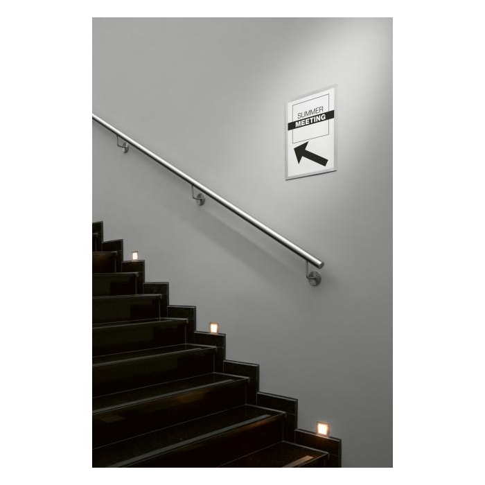 Ideálny na vystavovanie plagátov, kľúčových informácií, špeciálnych oznamov alebo dôležitých čísel. Informácie sa ľahko vymieňajú a sú čitateľné z oboch strán, ak sa panel umiestni napr. na okno alebo priehľadné dvere. Vhodný na hladké a pevné povrchy. V prípade potreby je ľahko premiestniteľný bez potreby vŕtania. Formát A4, rámik strieborný.