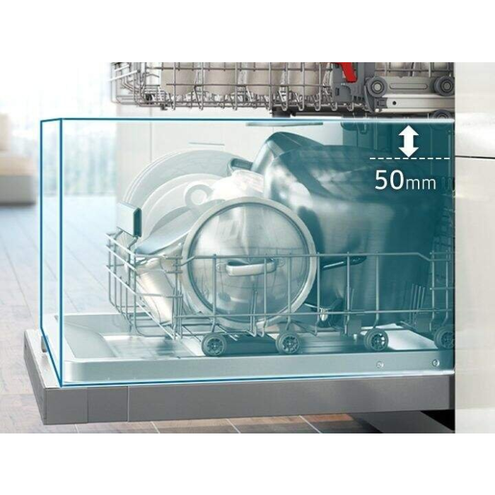 Staňte sa pánom svojho zariadenia a pohodlne ukladajte riad rôznych tvarov a veľkostí. Funkcia automatického prispôsobenia vnútorných priehradiek Auto Adjust vám jedným dotykom umožní posunúť horný priestor nahor alebo nadol, čím získate možnosť vytvoriť viac miesta v spodnej časti spotrebiča. Ten potom ľahko pojme riad takmer akéhokoľvek rozmeru – od vysokých hrncov cez široké podnosy až po hlboké zapekacie misy.