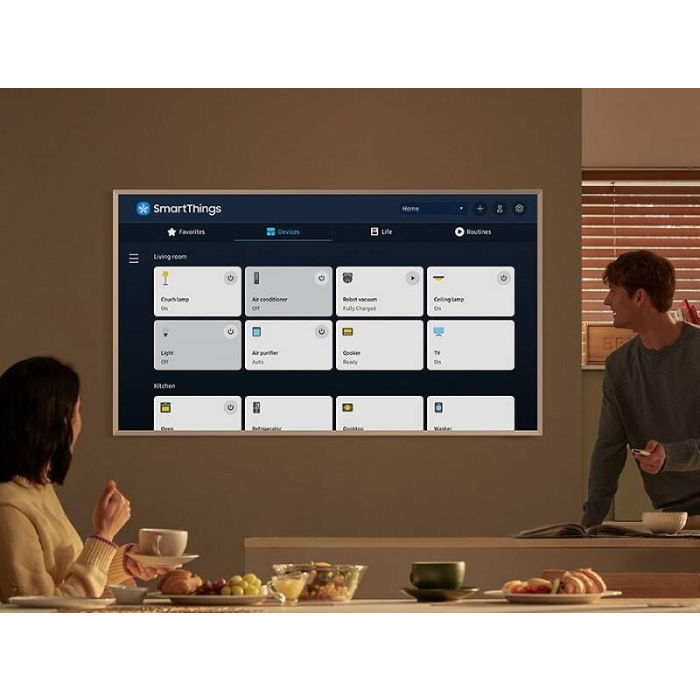 Pokochajte sa pohľadom na minimalistický dizajn s tenkým profilom, ktorý na vypnutej obrazovke zobrazí umelecké diela, ktoré v okamihu premenia váš domov na modernú umeleckú galériu.