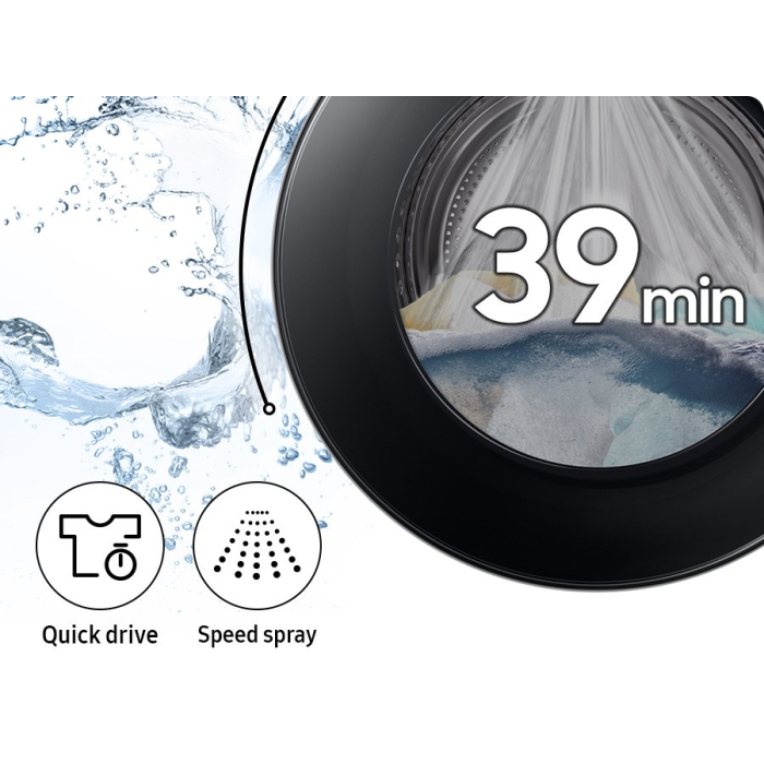 Kombinácia moderných technológií a funkcií výrazne skracuje dobu prania. Technológia QuickDrive dynamicky presúva bielizeň, EcoBubble zabezpečuje efektívne prenikanie pracích prostriedkov do tkanín a vodné trysky Speed Spray zase skracujú čas namáčania. Výsledkom je dokonalé a šetrné pranie len za 39 minút.