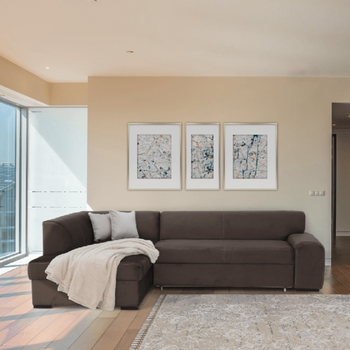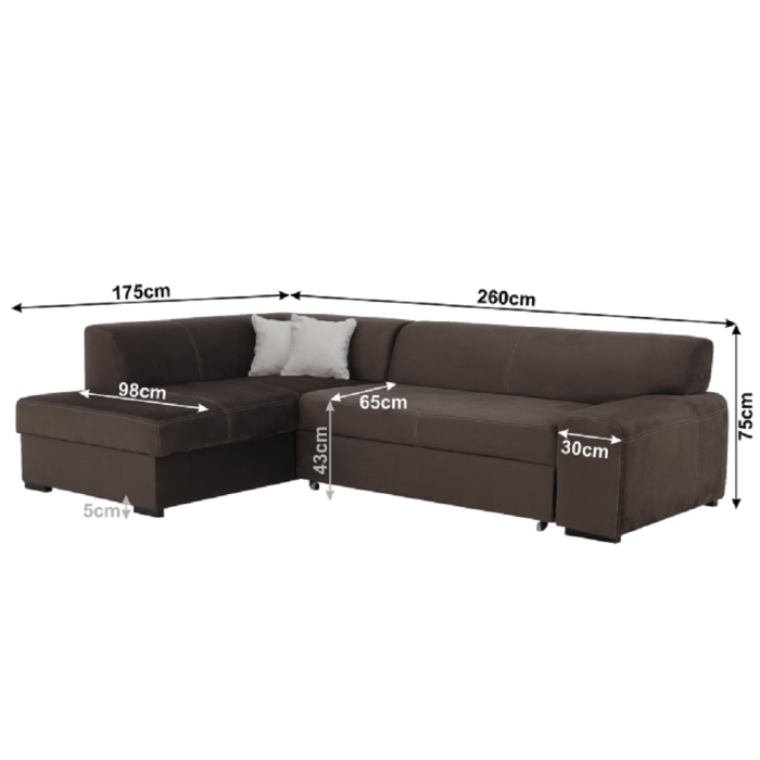 Celočalúnená rohová rozkladacia sedacia súprava s úložným priestorom, ľavá, MINERVA