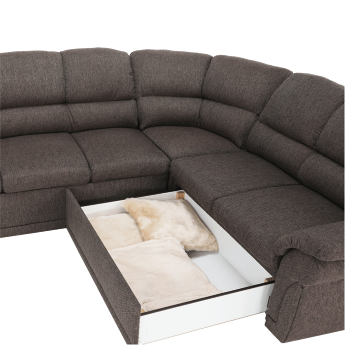 Rohová rozkladacia sedacia súprava s úložným priestorom,pravá, AMELIA