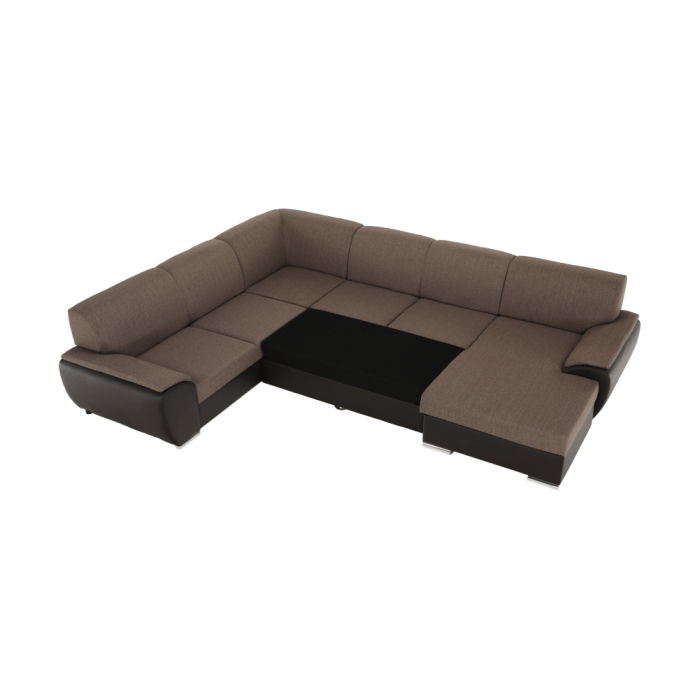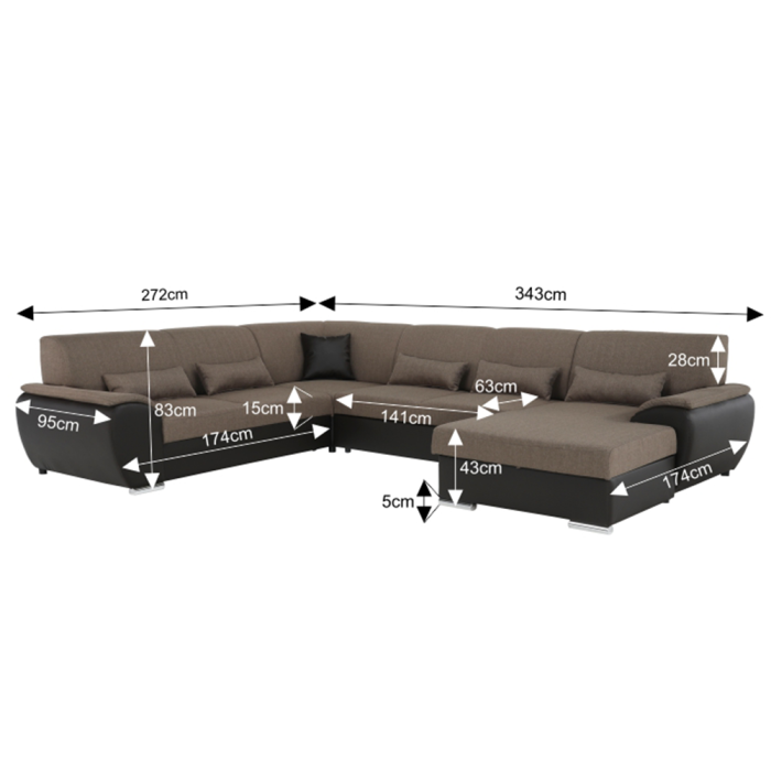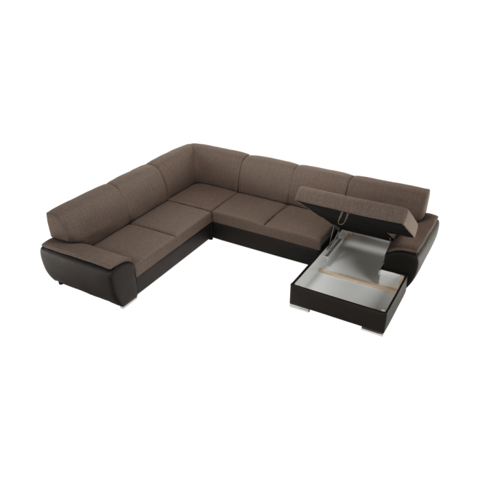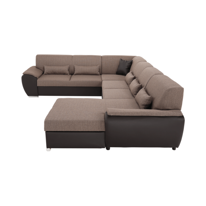 Sedacia súprava v tvare U, látka hnedá/ekokoža hnedá, pravá, EMILY U