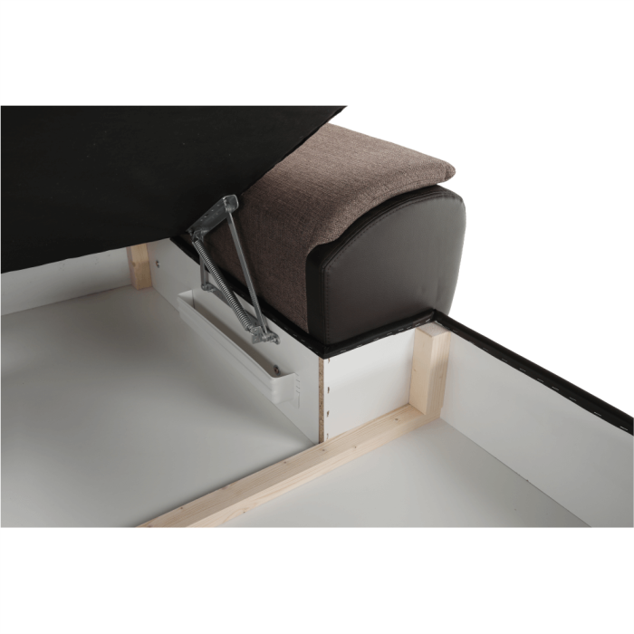 Rozmery (ŠxVxH): 343x83x272/174, plocha na spanie (DxŠ): 275x129 cm.