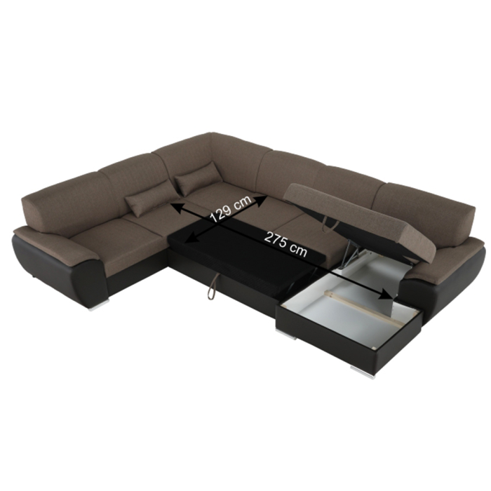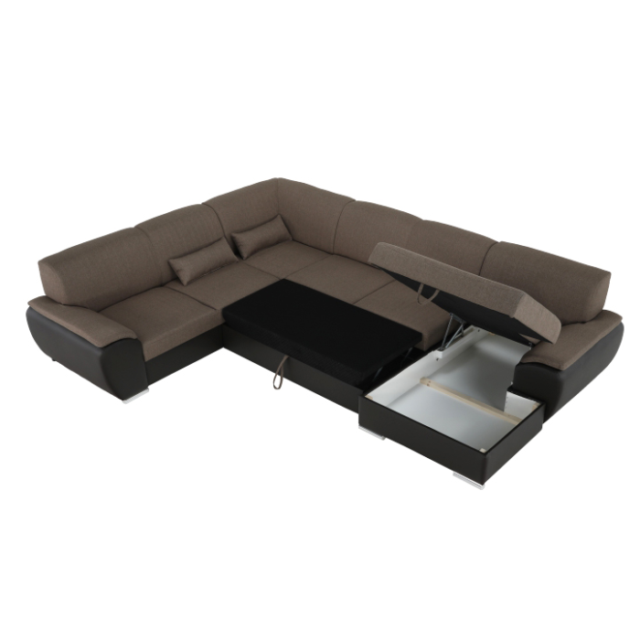 Celočalúnená rozkladacia sedacia súprava EMILY U s úložným priestorom.