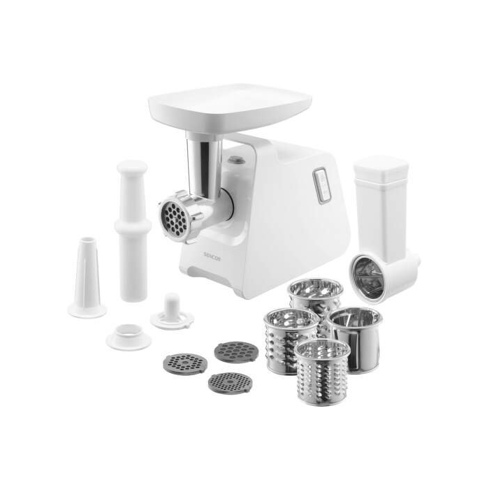 Elektrický mlynček na mäso Sencor SMG 4410WH vám uľahčí prácu pri varení a výrazne skráti aj celkovú dobu príprav. Silný motor s príkonom až 1 400 W v kombinácii s vysoko kvalitnými nožmi z odolnej ocele si poradí nielen s mäsom, ale aj s tvrdými surovinami. Vďaka praktickému príslušenstvu ho navyše môžete použiť aj na strúhanie, krájanie a plnenie klobás.