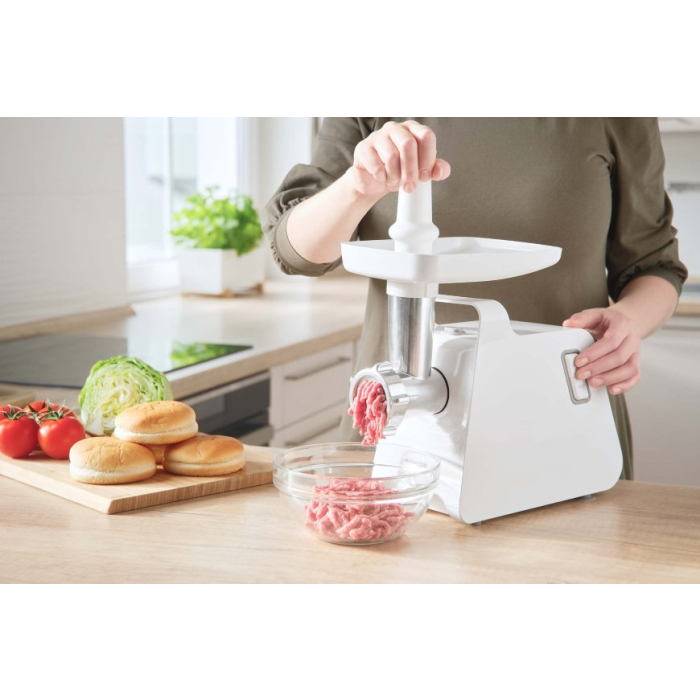Mlynček na mäso spracuje až 1,7 kg mäsa za minútu, takže počas chvíľky budete mať pripravené suroviny na sekanú, chilli noc carne aj hamburgery. K dispozícii budete mať 3 disky, ktoré umožnia úpravu na extra jemné, jemné alebo hrubé kúsky. Tým sa vám otvára pestrá škála chutných receptov z celého sveta.