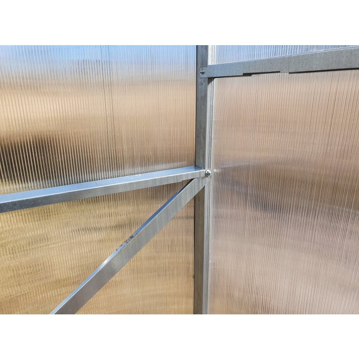 Veľmi robustná konštrukcia, 100% spoľahlivosť a jednoduchá montáž. Tento masívny oceľový skleník je určený pre zákazníkov, ktorí chcú mať pokojné spanie aj pri dnešnom neistom počasí. Skleník LANITPLAST DOMIK má rozstup oceľových nosných profilov 100 cm od seba + nadštandardné podpery pre polykarbonát v streche aj v bočných stenách. Skleník je vyrobený z galvanicky pozinkovanej oceľovej obdĺžnikovej rúrky prierezu 40 x 20 mm o hrúbke steny 0,85 - 1,05 mm. Obe čelá skleníka sú opatrené jednokrídlovými dvojdielnymi dverami na pántoch, kedy horné (menšie) krídlo je možné použiť ako ventilačné okienko. Skleník je priechodný z oboch strán.