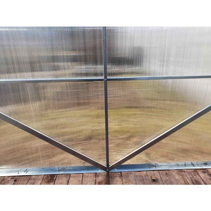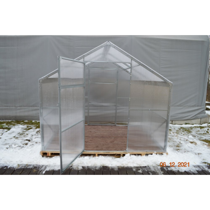 Obsahom dodávky je kompletný skleník = nosná konštrukcia (vrátane oboch dverí), všetky potrebné spojovacie prvky + polykarbonátové dosky. Ku skleníku je možné dokúpiť množstvo doplnkov - strešné okná, regály, teplomery, vlhkomery. Skleník v základe nepotrebuje žiadnu podmurovku, pretože konštrukcia skleníka obsahuje kotvy na zapustenie do zeme (ideálne je zabetónovanie kotiev) do hĺbky cca 20 - 25 cm. Alebo je možné skleník priskrutkovať k akejkoľvek podmurovke prípadne drevenému rámu. Kotvy je možné do zeme aj iba zasypať a silne udusať, ale v ČR a SR toto riešenie vzhľadom k silným letným búrkam neodporúčame.