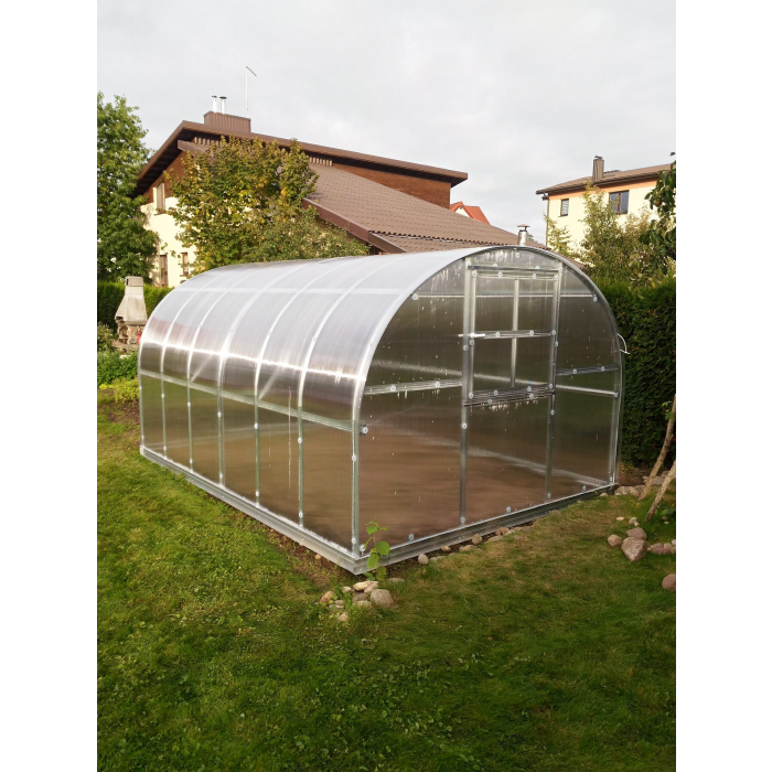 Oblúkový oceľový skleník, š 3 x d 4 m, pozinkovaná základňa, polykarbonát 4 mm, plocha 12 m2, vyrobené v EÚ.