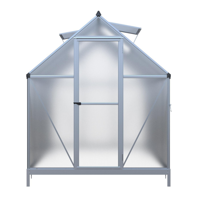 Hliníkový skleník, š 1,82 x d 3,64 m, strieborný, 2x str. okno, polykarbonát 4 mm, dvere na pántoch, plocha 6,62 m 2.