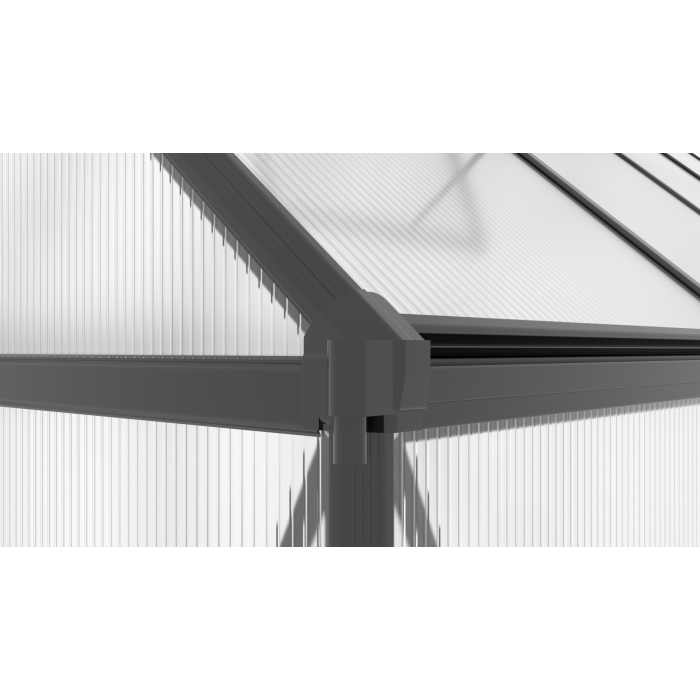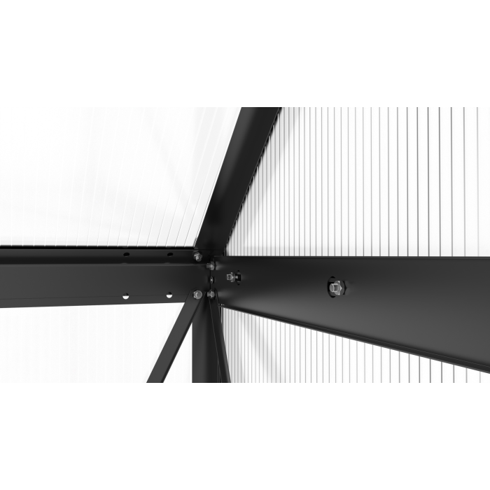 Skleníky radu SARANA sú jedny z najpredávanejších modelov značkových skleníkov LANIT PLAST. Rámová konštrukcia je vyrobená z eloxovaných hliníkových profilov, ktoré zaručujú dlhú životnosť a vysokú odolnosť. Presklenie tvoria dvojstenné komôrkové polykarbonátové dosky s hrúbkou 4 mm, ktoré poskytujú vynikajúce tepelno-izolačné vlastnosti a optimálnu ochranu proti UV žiareniu. Dosky sú pevne uchytené do plochých aj rohových H-profilov, čím je zaistená maximálna stabilita a odolnosť celej konštrukcie. Skleník je ďalej vybavený uzavretými bočnými hranami polykarbonátu, ktoré prispievajú k jeho dlhodobej trvanlivosti. Hlavnou prednosťou modelu sú zosilnené nosné profily, ktoré výrazne zvyšujú jeho pevnosť a odolnosť voči poveternostným podmienkam, ako je silný vietor a snehové zaťaženie.