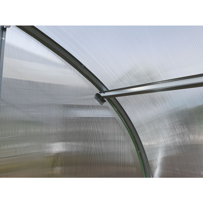 | oblúkový skleník LANITPLAST TIBERUS | pozinkovaný oceľový profil 1mm, rozostup oblúkov 100 cm, dvojité dvere vpredu, ventilačné okno vzadu, presklenie nutné vyrezať z dodaných polykarbonátových dosiek, možnosť montáže strešného okna - áno |