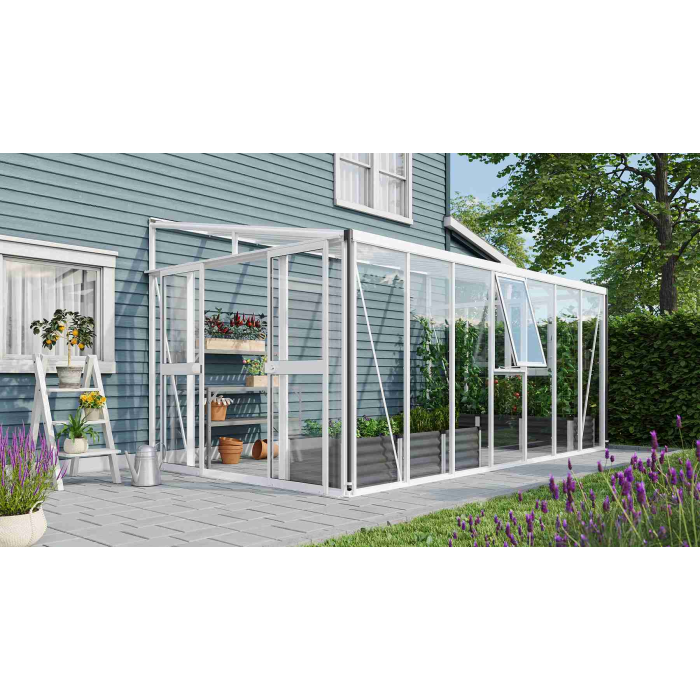Skleníky radu ATHENA sú zaradené do kategórie PREMIUM - skleník je vyrobený značkovým výrobcom z Veľkej Británie. Skleník je vyrobený z eloxovaných hliníkových profilov, presklenie je z kaleného číreho skla hrúbky 3 mm. Číre sklo zaisťuje výbornú svetelnú priepustnosť, takže do skleníka je krásne vidieť zo všetkých strán a kedykoľvek sa môžete pokochať pohľadom na pestovanú zeleninu alebo kvety. Presklenie strechy je z tepelnoizolačných komôrkových polykarbonátových dosiek s hrúbkou 10 mm. Presklenie je zasunuté do hliníkových H-profilov.