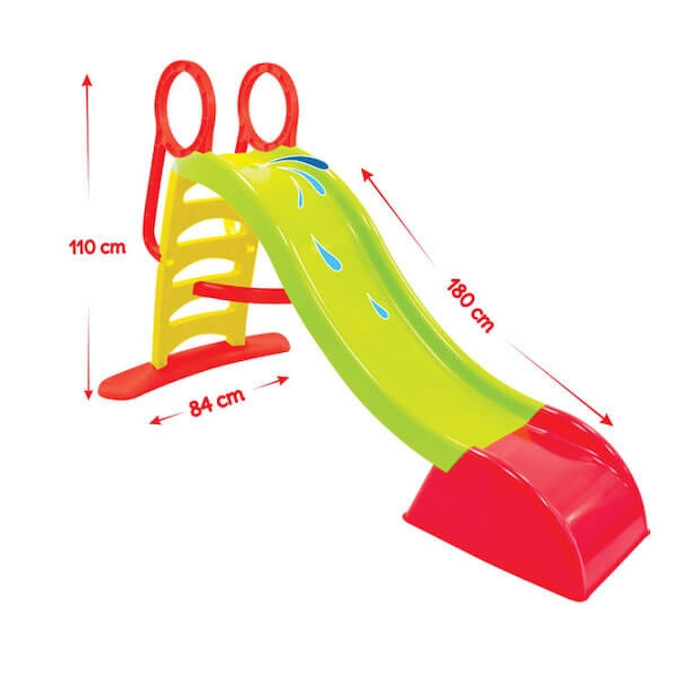 Veľká záhradná šmykľavka pre deti od 3 rokov. Hladká šmýkacia plocha s dĺžkou 180 cm poskytuje skvelú zábavu . K šmykľavke môžete pripojiť záhradnú hadicu a zvlhčovať šmýkaciu plochu. Protišmykové schodíky a stabilná konštrukcia.