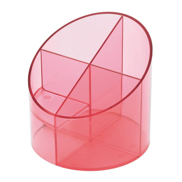 Stojan so štyrmi oddielmi na perá, ceruzky a kancelárske drobnosti z plastu v ekonomickom prevedení.
