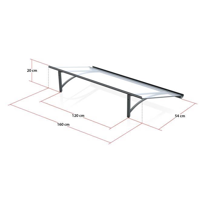 Hliníková vchodová strieška, antracit, š 1600 x h 540 x v 200 mm, číry komôrkový polykarbonát 4,5 mm.