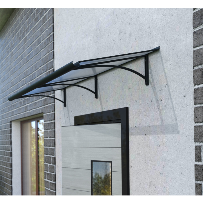 Hliníková vchodová strieška, antracit, š 1970 x h 540 x v 200 mm, číry komôrkový polykarbonát 4,5 mm.