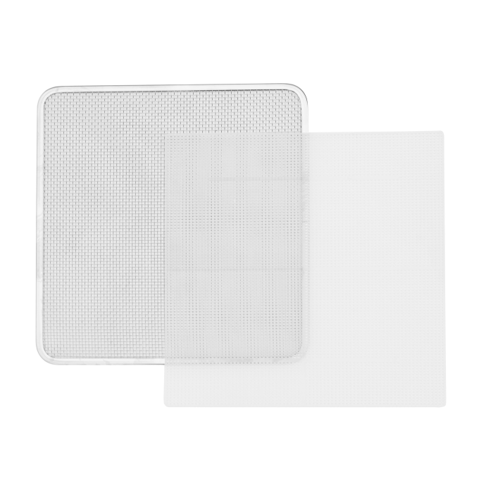 K sušičke navyše získate nielen 6 základných sušiacich plát v nerezovom prevedení, ale aj 6 vložiek s jemným sieťovaním. Využijete ich pre sušenie drobných surovín, ako sú napríklad huby či bylinky alebo dokonalé domáce musli.