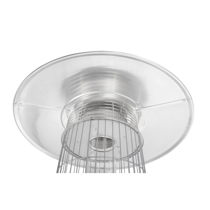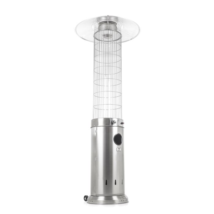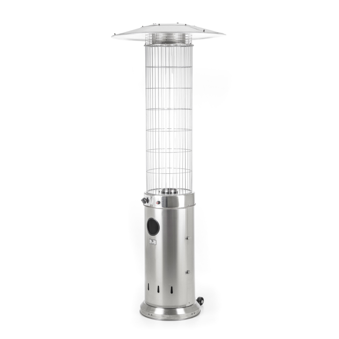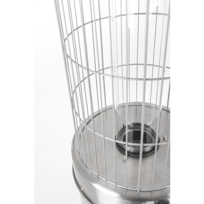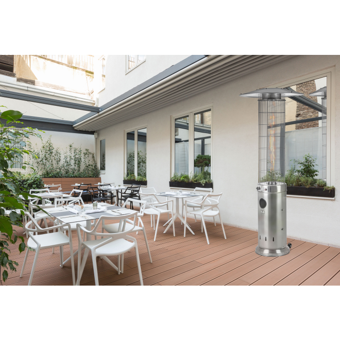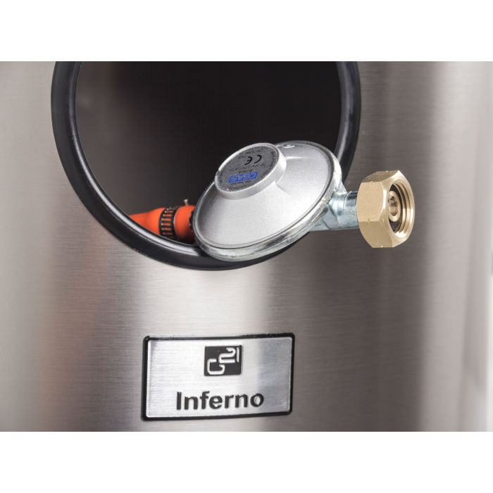 Vonkajší tepelný žiarič G21 Inferno v nerezovom vyhotovení s jednoduchým napojením na PB fľašu. Vysoký výkon – až 13 kW. Elegantné riešenie ohnivého plameňa v sklenenej trubici. Piezo elektrické zapaľovanie, kolieska pre ľahkú manipuláciu.