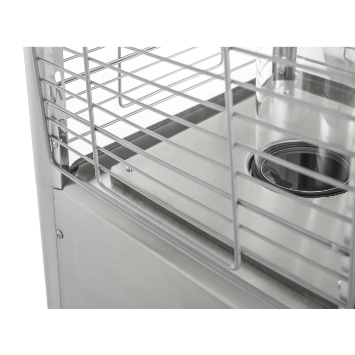 Vonkajší tepelný žiarič G21 Volcano v nerezovom vyhotovení s jednoduchým napojením na PB fľašu. Vysoký výkon – až 13 kW. Elegantné riešenie ohnivého plameňa v sklenenej trubici. Piezo elektrické zapaľovanie, kolieska pre ľahkú manipuláciu.