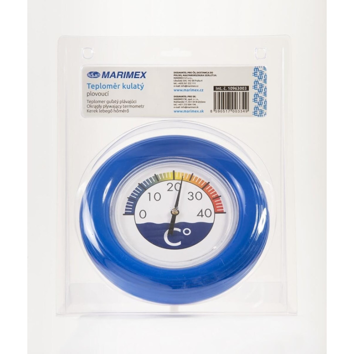 Plávajúci teplomer určený k meraniu teploty vody v bazéne.