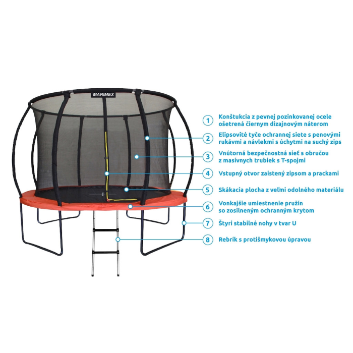 Trampolína Marimex PREMIUM 396 cm + vnútorná ochranná sieť + schodíky