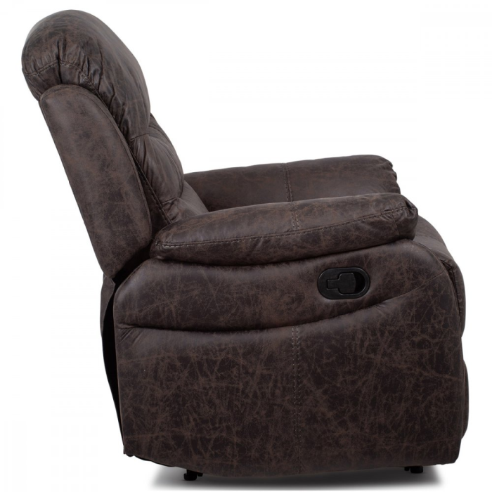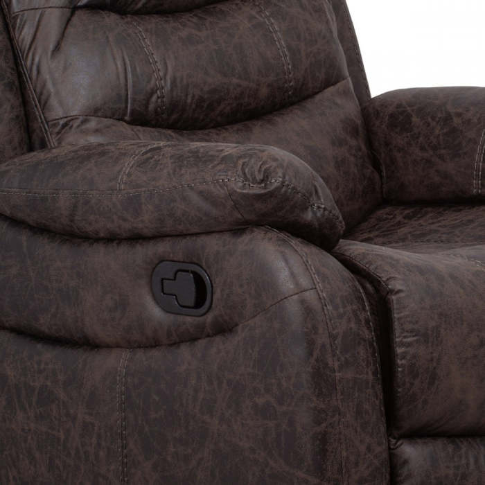 Elegantní, extra polstrované a velmi pohodlné polohovatelné TV a relaxační křeslo z kolekce Comfort Artium. Potah je z hnědé látky v dekoru vintage kůže. Kostra je z masivního dřeva. Mechanická konstrukce je kovová s kvalitním práškovým nástřikem v černé barvě. Výplň z PU pěny 28 kg/m2 na sedacích plochách, 22 kg/m2 na ostatních plochách. V místech sedáku jsou vlnovcové pružiny a elastické popruhy pro zpevnění. Funkce – polohovatelné ve dvou pozicích s aretací. Nosnost křesla je 130 kg. Je přímo ztělesněním pohody a relaxace. Hodí se do jakkoliv stylově zařízeného interiéru a v každém bude působit jako skvělý a hlavně pohodlný solitér.