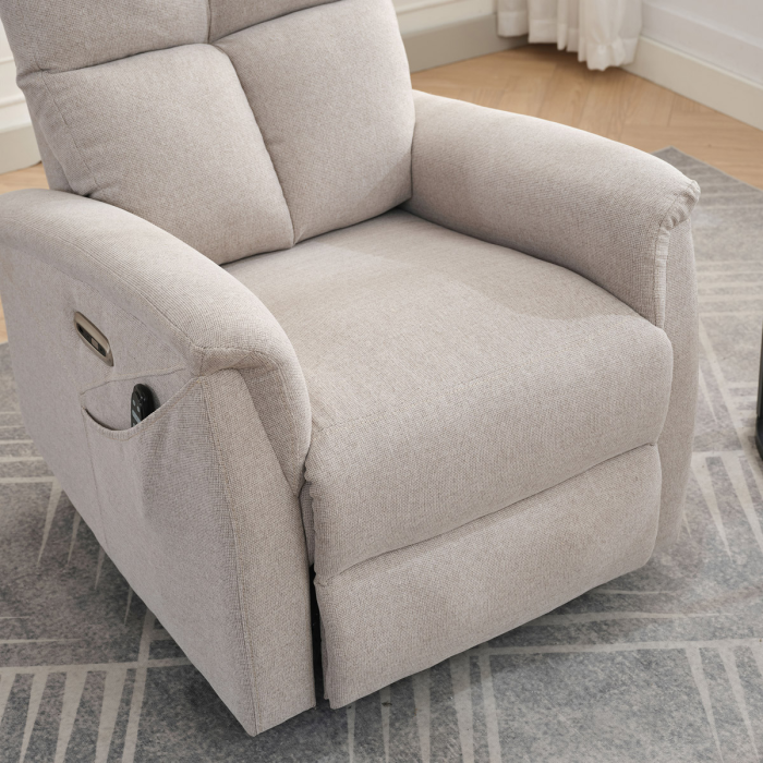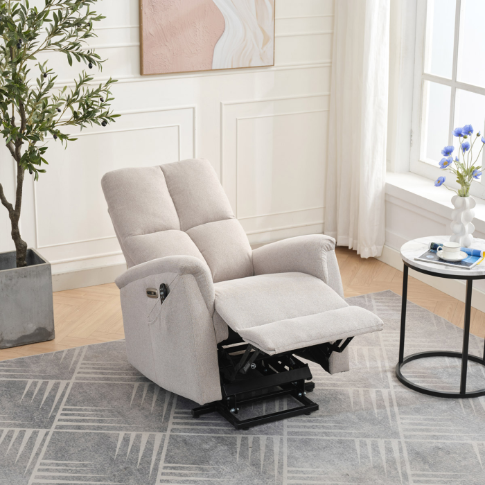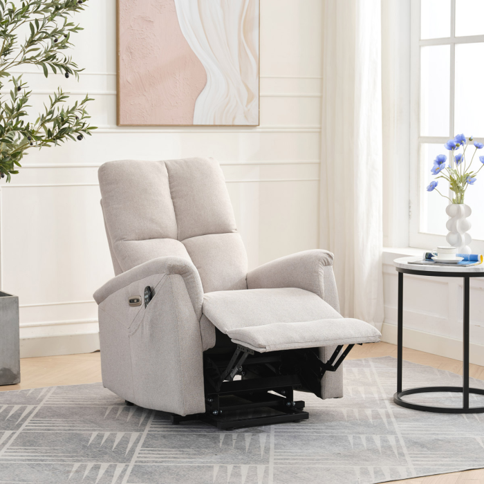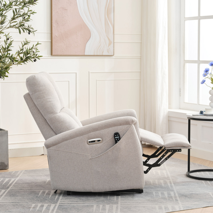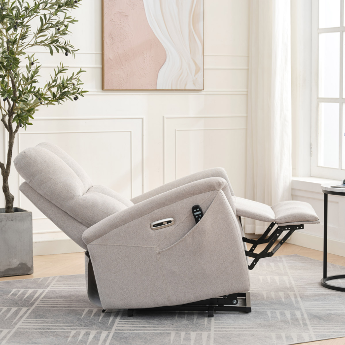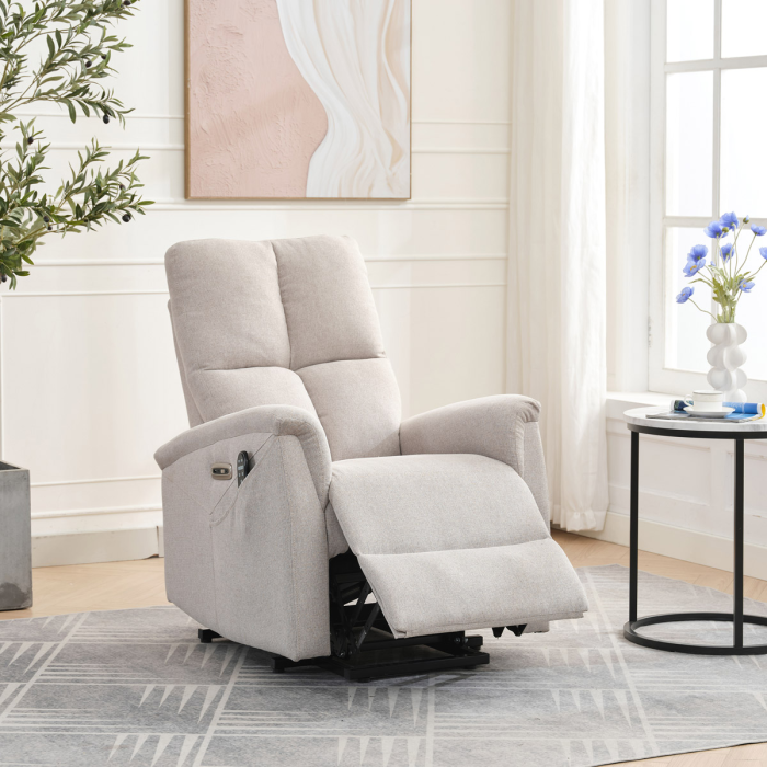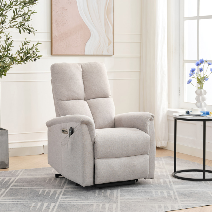 Objevte pohodlí a relaxaci s naším elektricky ovládaným relaxačním křeslem v moderní krémové barvě. Toto křeslo je navrženo tak, aby poskytovalo maximální komfort a zlepšilo váš domácí odpočinek. Ideální do obývacího pokoje, kde se stane vaším oblíbeným místem pro relaxaci. Klíčové vlastnosti: • Elektrické ovládání: Křeslo je vybaveno jedním motorem pro snadné a plynulé nastavování polohy opěradla a podnožky. • Výklopná funkce: Usnadňuje vstávání, což je ideální pro osoby s omezenou pohyblivostí. • Integrované ovládání s USB a USB-C: Panel umožňuje snadné nastavení křesla a nabíjení vašich elektronických zařízení přímo z křesla. • 8 bodová vibrační masáž: Strategicky rozmístěné body masáže poskytují maximální úlevu a uvolnění svalů. • Vyhřívání: Vyhřívací funkce je ideální pro chladnější dny a pomáhá zmírnit svalové napětí. • Kabelový ovladač: Snadno dostupný a intuitivní ovladač pro funkce masáže a vyhřívání. • Moderní design: Čalouněné měkkou a odolnou látkou v elegantní šedé barvě, která se hodí do jakéhokoli interiéru. Proč si vybrat naše elektrické relaxační křeslo? Naše elektricky ovládané relaxační křeslo je navrženo s ohledem na vaše pohodlí a zdraví. S funkcemi jako jsou vibrační masáž a vyhřívání, poskytuje úlevu od každodenního stresu a napětí. Integrované ovládání s USB porty je moderním doplňkem, který vám umožní zůstat připojení a nabíjet svá zařízení, aniž byste museli vstávat. Výklopná funkce je skvělá pro seniory nebo osoby s omezenou pohyblivostí, usnadňuje vstávání a zajišťuje bezpečnost. Zakupte si naše krémové elektrické relaxační křeslo ještě dnes a začněte si užívat luxusní pohodlí ve svém domově.