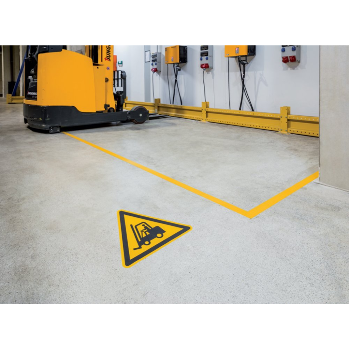 Odolnosť proti skĺznutiu R9 podľa DIN 51130 v súlade s ISO 7010. Samolepiace značky na bezpečnostné označenie pre vnútorné použitie v skladoch, distribučných centrách, výrobných závodov a i. Odolné voči oderu a ťažkej záťaži.
