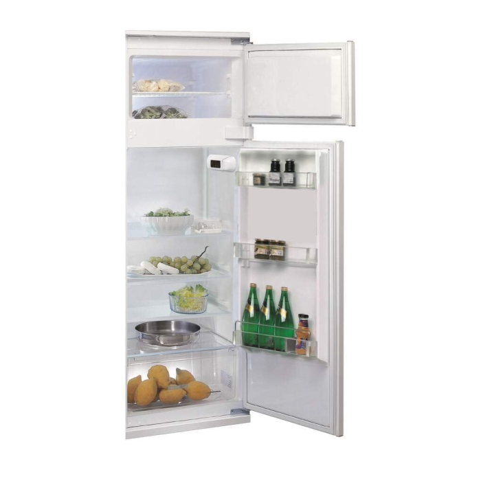 Vstavaná kombinovaná chladnička Whirlpool ART 3802 s celkovým objemom 218 litrov poskytne dostatok priestoru pre uskladnenie všetkých vaších potravín. Chladiaca časť s kapacitou 178 litrov pozostáva zo 4 sklenených poličiek, zásuvky na ovocie a zeleninu a 3 priehradkami vo dverách.