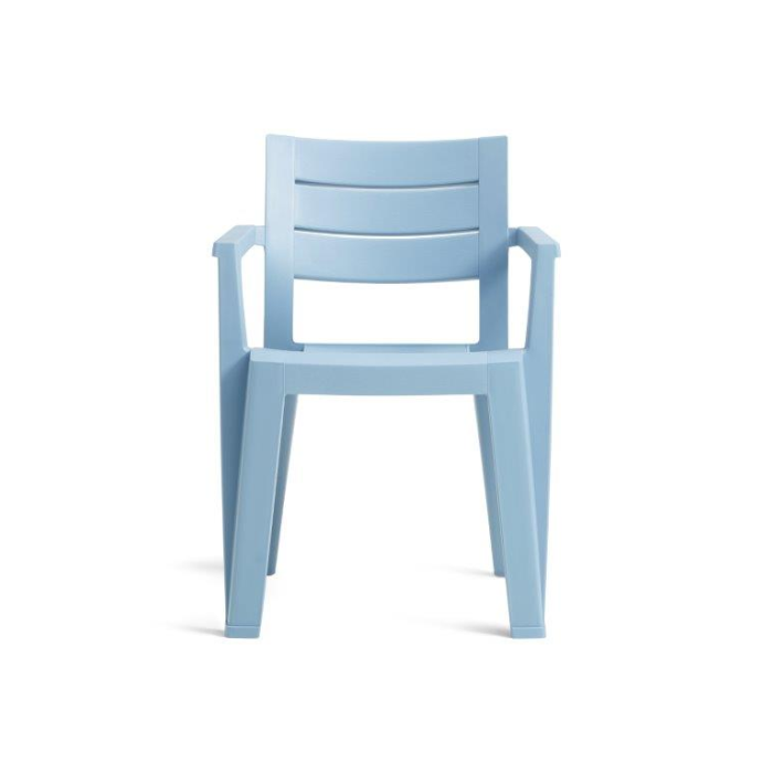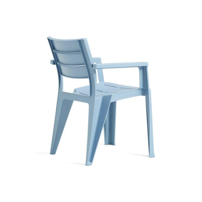 Stolička v modrej farbe tvorí dokonalý pár s priestranným rovnomenným stolom. Odolná voči mechanickému opotrebovaniu, UV žiareniu aj proti atmosférickým vplyvom. Farba nebledne ani po opakovanom vystavení UV žiareniu.