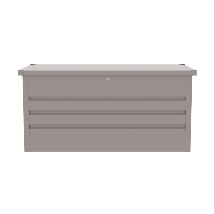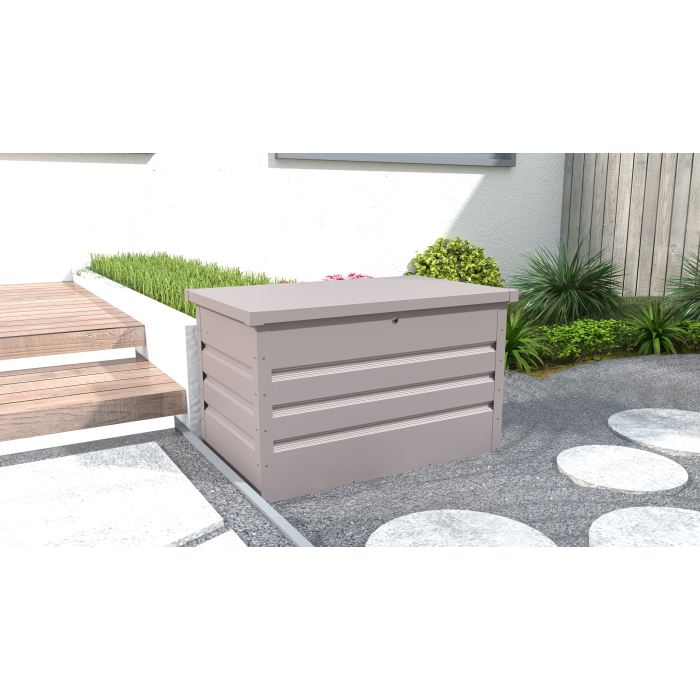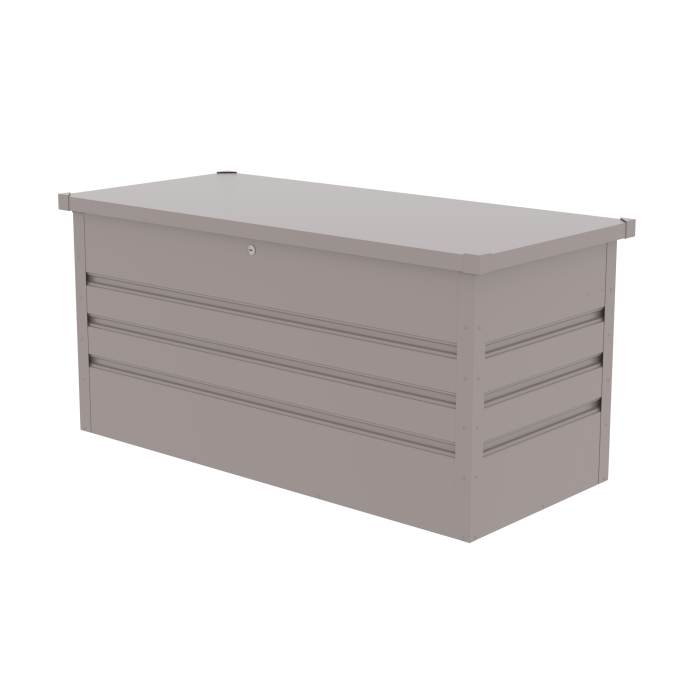 Bezúdržbový uzamykateľný záhradný box z pozinkovanej ocele bezpečne ochráni uložené záhradné náradie aj vybavenie. Rozmer 99 x 61 x 58 cm, ľahké otváranie veka vďaka plynovým vzperám, zámok aj kľúče súčasťou balenia.