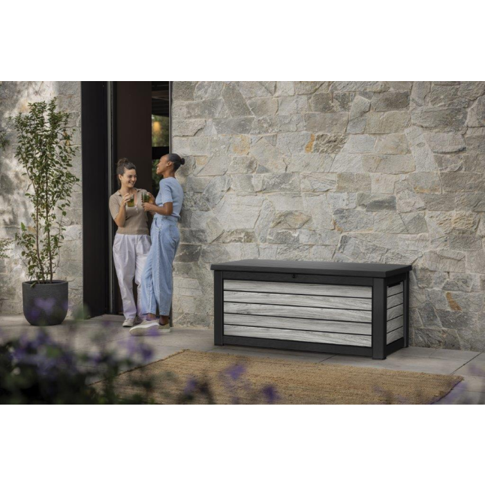 Hľadáte praktické a štýlové riešenie na uskladnenie záhradného vybavenia? Záhradný box Keter Deco 630 l Storm grey zaujme vzhľadom pripomínajúcim drevo, vysokou nosnosťou a možnosťou sedenia až pre 2 osoby. Praktické držadlá a piestový systém veka z neho robia ideálneho pomocníka na každodenné používanie.