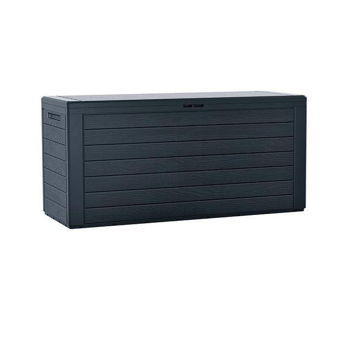 Záhradný box Woodebox značky Prosperplast predstavuje praktického pomocníka do vonkajších priestorov. Vďaka svojmu drevenému dizajnu bude ozdobou vašej záhrady, terasy alebo balkóna. Jeho antracitová farba pôsobí príjemne na pohľad. Uschovajte do boxu s odvetrávaním všetko potrebné od detských hračiek po deky a vankúše. Možno ho zabezpečiť aj visiacim zámkom a zamknúť cennejšie veci vo vnútri. Zostavenie boxu zvládne každý. Jednotlivé časti boxu sa zacvakajú do seba, takže vám jeho zostavenie nezaberie veľa času a nebudete potrebovať ani žiadne náradie. Na bočných stranách boxu sa nachádzajú madlá na jednoduché prenášanie. Veko boxu je odklápacie pomocou plastových pántov.