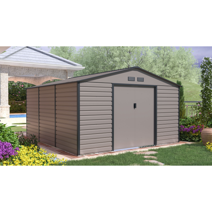 Šedý záhradný domček G21 GAH 1300 je vyrobený z kvalitného profilovaného oceľového plechu hrúbky 0,25 - 0,30 mm. Je pozinkovaný a má práškový nástrek. Konštrukcia je tiež oceľová a pozinkovaná. Je ideálny pre celoročné uskladnenie záhradného náradia.