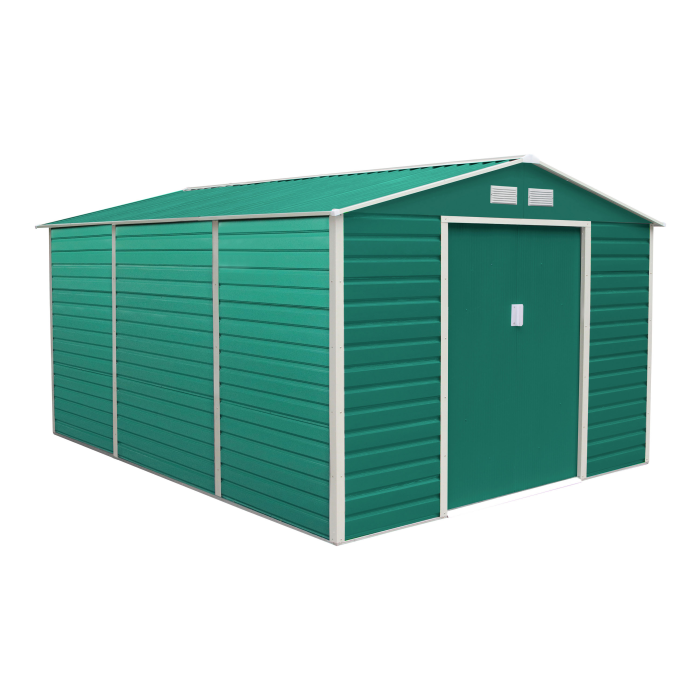 Zelený záhradný domček G21 GAH 1300 je vyrobený z kvalitného profilovaného oceľového plechu hrúbky 0,25 - 0,30 mm. Je pozinkovaný a má práškový nástrek. Konštrukcia je tiež oceľová a pozinkovaná. Je ideálny pre celoročné uskladnenie záhradného náradia.