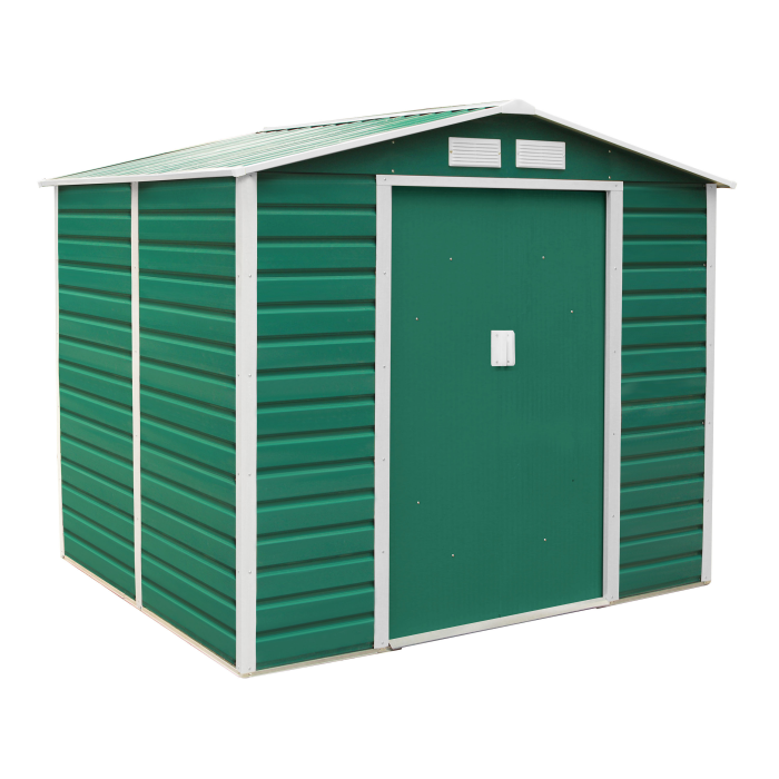 Zelený záhradný domček G21 GAH 407 je vyrobený z kvalitného profilovaného oceľového plechu hrúbky 0,25 - 0,30 mm. Je pozinkovaný a má práškový nástrek. Konštrukcia je tiež oceľová a pozinkovaná. Je ideálny pre celoročné uskladnenie záhradného náradia.