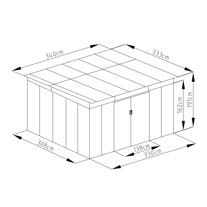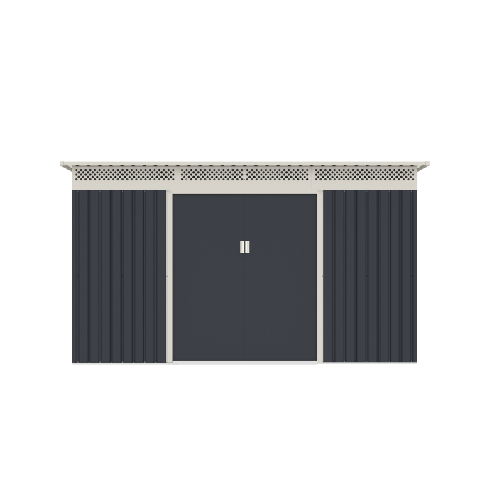 Záhradný domček GRAH 1132 má dvojkrídlové dvere o celkovej šírke 138 cm. Vstup do domčeka je tak naozaj pohodlný, aj keď nesiete alebo vynášate objemnejšiu vec.