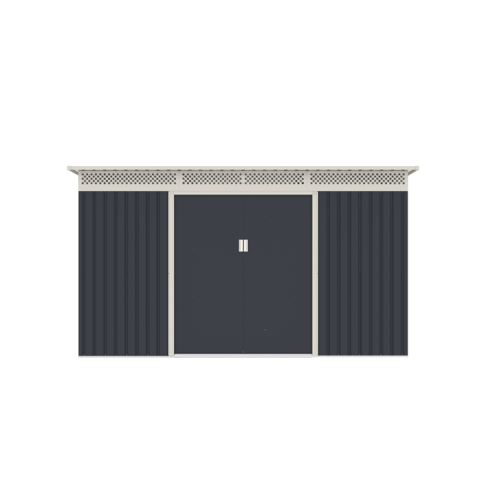 Štýlový, bezúdržbový a praktický záhradný domček G21 GRAH 915 z kvalitného profilovaného oceľového plechu hrúbky 0,25 – 0,30 mm. Domček s pultovou strechou je pozinkovaný s práškovým nástrekom, pozinkovaná je aj oceľová konštrukcia. Úložná plocha 9,1 m2.