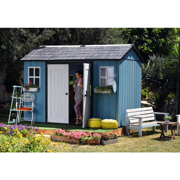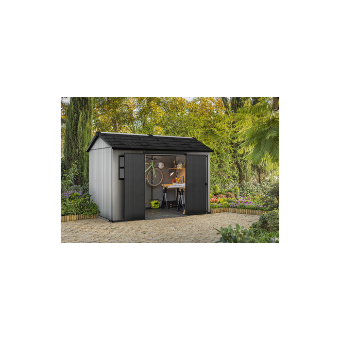 Bývate v rušnej štvrti? Potom oceníte zaisťovací systém z ušľachtilej ocele, ktorý je pripravený na osadenie zámkom, takže budú vaše veci úplne v bezpečí. Súčasťou domčeka sú aj široké dvojité dvere a okná, ktoré do domčeka vnesú prirodzené denné svetlo. Pomocou systému D-Clip môžete na vnútornú stranu stien veľmi jednoducho umiestniť regály, organizéry alebo si zavesiť bicykel.
