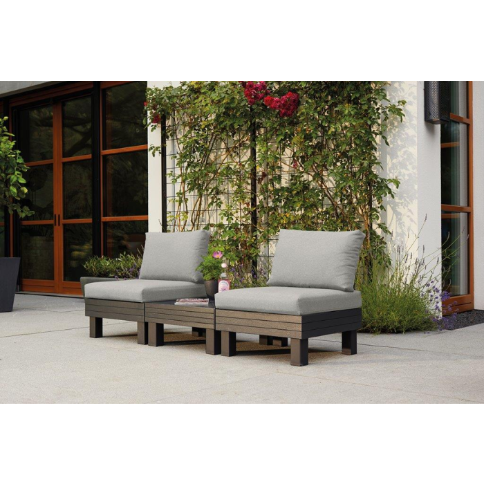 Modulárny set, 2 miesta na sedenie, odolnosť voči UV žiareniu a poveternostným podmienkam, vysoké podsedáky so spodnou protišmykovou úpravou pre väčšie pohodlie, jednoduchá údržba aj montáž.
