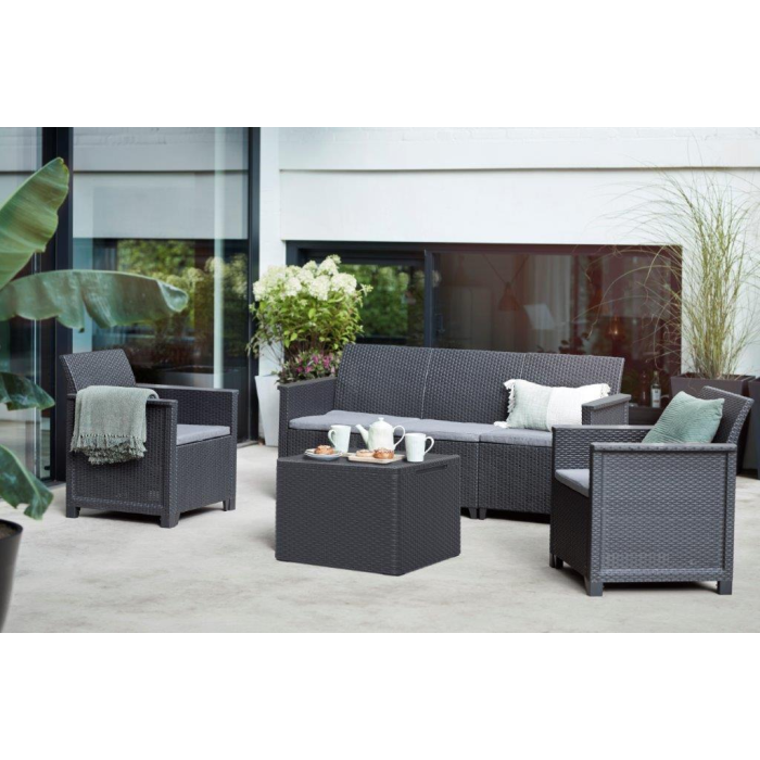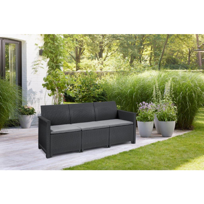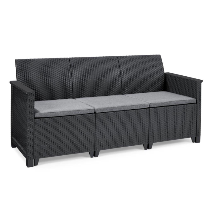 Sedačka sratanovou textúrou vkusne doplní takmer každý dizajn záhrady, ale môžete ju pokojne použiť aj v interiéri. Materiál pohovky je navyše odolný voči nepriaznivému počasiu a UV žiareniu, takže krásna grafitová farba len tak nevybledne.