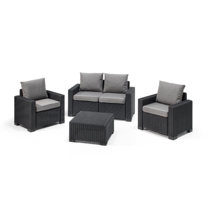 Vybavte svoju záhradu, terasu, balkón alebo pergolu záhradným nábytkom Keter California. Usporiadajte čajový večierok, stretnite sa s priateľmi či rodinou a doprajte si odpočinok na čerstvom vzduchu. Uvelebíte sa do priestorných kresiel alebo na 2-miestnu pohovku a na stolík položíte svoju šálku kávy.