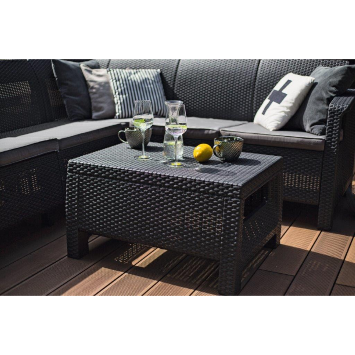 Záhradný stolík z rady Corfu II najobľúbenejšej značky Keter vás nadchne svojim nevšedným dizajnom v imitácii prírodného ratanu. Konštrukcia je pritom pevná a vydrží bežné zaťaženie vonkajšej prevádzky.