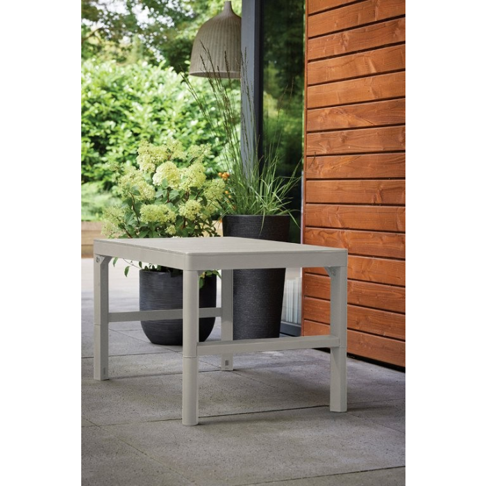 Stôl je vyrobený z kvalitného plastu, ktorý odoláva poveternostným vplyvom aj UV žiareniu, takže si dlhodobo zachová svoj vzhľad. Nízka hmotnosť 10,1 kg uľahčuje manipuláciu a presun stola podľa potreby.