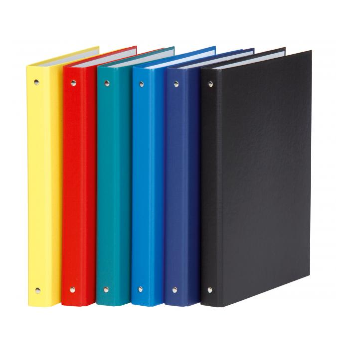 Zakladač so 4 krúžkami priemeru 20 mm potiahnutý z vonkajšej strany PP fóliou o hrúbke 100 µm a z vnútornej strany hladkým papierom.