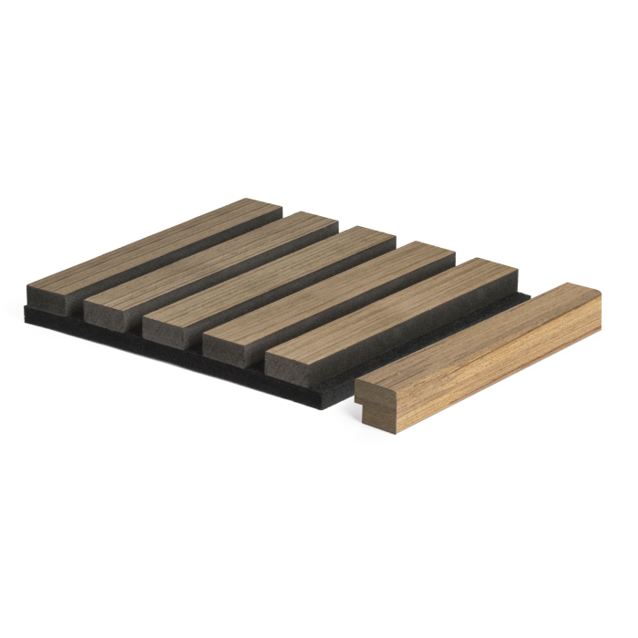Zakončovacia lišta G21 vo farbe teak je ideálna pre elegantné zakončenie obloženia z akustických panelov.
