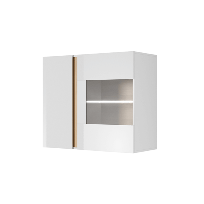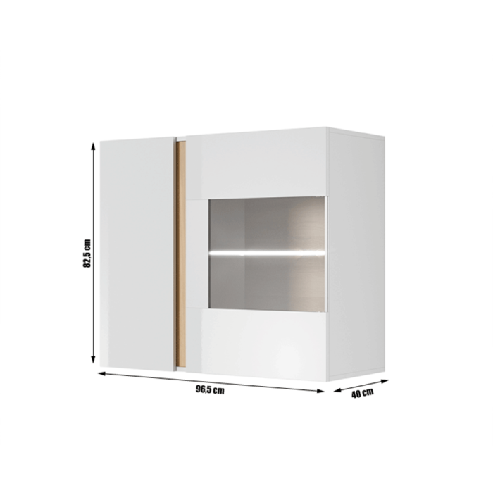 Závesná vitrína 96, biela/dub grandson/biely lesk, CITY