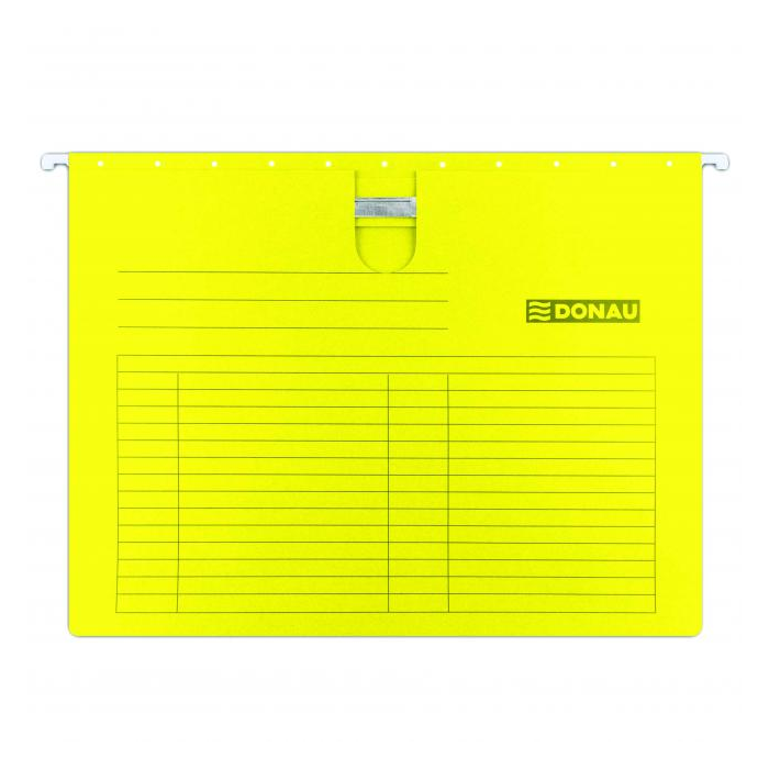 Pevne zachytený chrbát rýchloviazača umožňuje zakladanie jednotlivých spisov, kovové závesné háčiky garantujú dlhodobé používanie. Súčasťou obalu je plastový index.